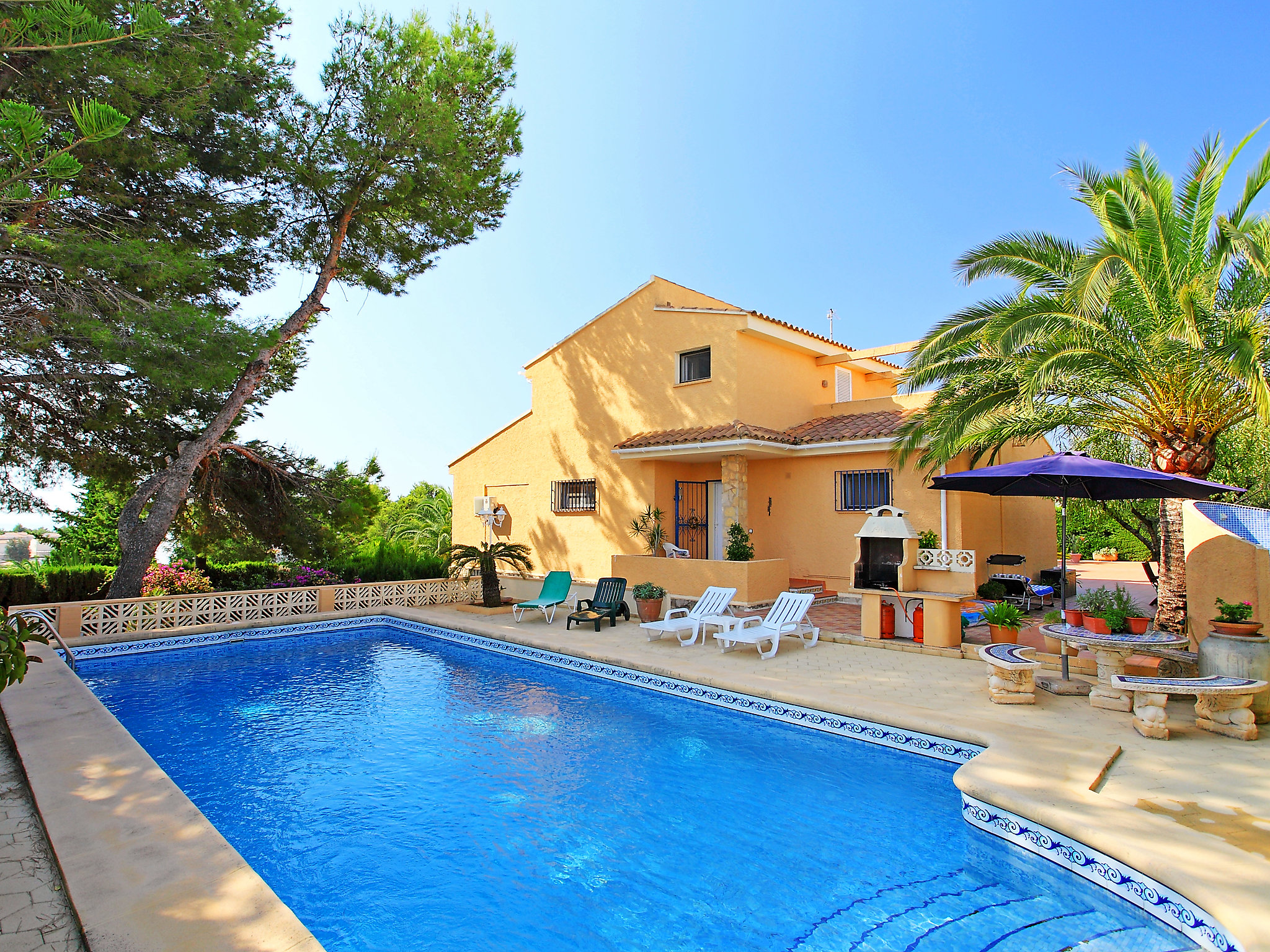 Gran Sol: Casa singola "Casa Romario", piacevole. A 3.5 km dal centro di Calpe, posizione tranquilla, a 3 km dal mare. Per uso privato: terreno 980 m2 (recintato), bello, curato giardino, piscina (11 x 5 m, profondità 130 - 280 cm, disponibilità stagionale: 01.Gen. - 31.Dic.) con scaletta. Doccia esterna, patio, terrazza, mobili da giardino, barbecue. Supermercato 3 km, ristorante 1.5 km, bar 900 m, spiaggia sabbiosa 3 km. Attrazioni nelle vicinanze: Aqualandia, Mundomar, Terra Mítica, Terra Natura, y Benidorm Palace (Benidorm).Disponibilità