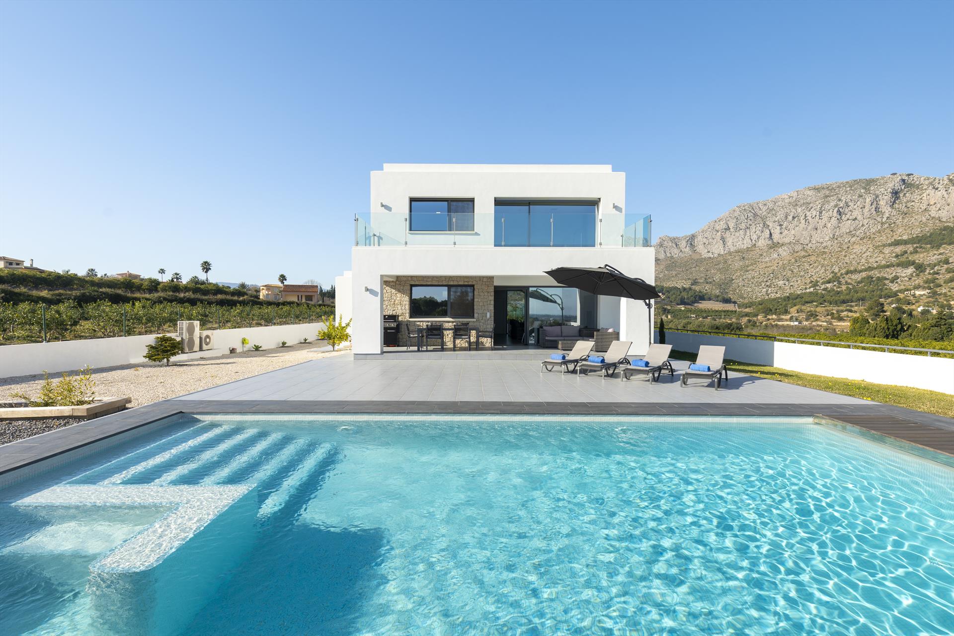 Villa moderna e confortevole con piscina privata a Denia, sulla Costa Blanca, in Spagna per 10 persone. La villa si trova in una zona collinosa e rurale.