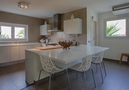 - cucina americana con fornello a gas, forno elettrico, microonde, frigorifero, congelatore, macchina per caffé, bollitore d’acqua, frullatore, tostapane e juicer