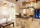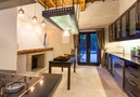 - cucina americana con fornello a gas, forno elettrico, microonde, lavastoviglie, frigo-congelatore, macchina per caffé, bollitore d’acqua, frullatore, tostapane e juicer